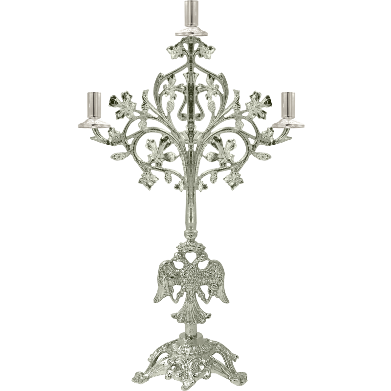 Κηροπήγιο ασημένιο επιχρυσωμένο με βάση το οποίο είναι στολισμένο