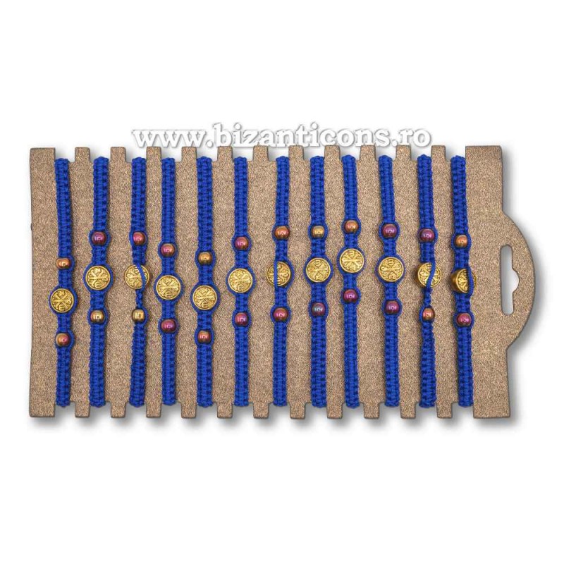 34-280AB metanie impletita ALBASTRU + cruce metal - carton 12/set