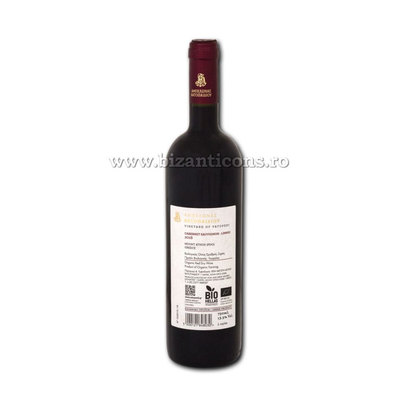 Vin manastiresc - Vatoped - Cabernet Sauvignon - LIMNIO 2018 - rosu sec 13,5% - - 750 ml VT 962-6
