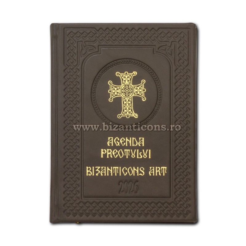 • Agenda are 386 de pagini și un conținut informațional bogat, gândit special pentru activitatea unui preot ortodox. Designul interior pornește de la interpretarea unor simboluri și viniete arhaice românești, combinate cu cele creștine.