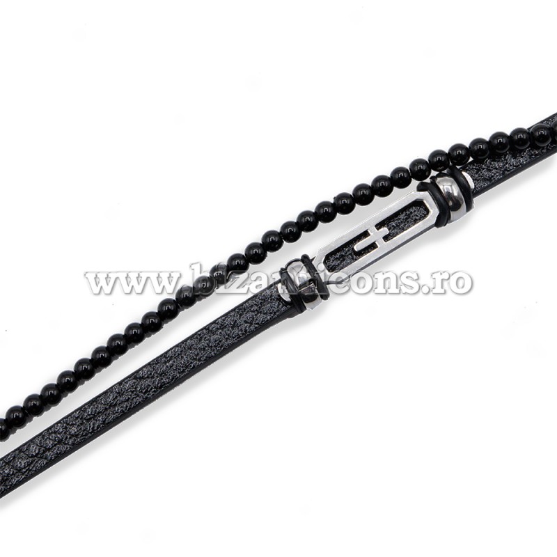 Bratara piele - cruce din inox 12/set