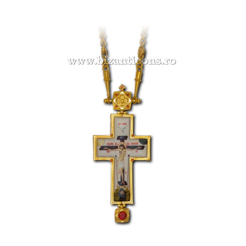 Cruce Stavrofor Bronz aurit - pietre rosii - email AT 140-16