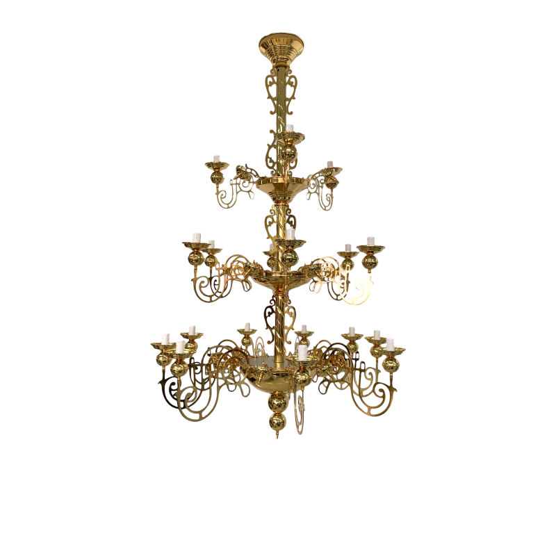 Policandru din bronz aurit - ornamente cu email 28 becuri X81-720