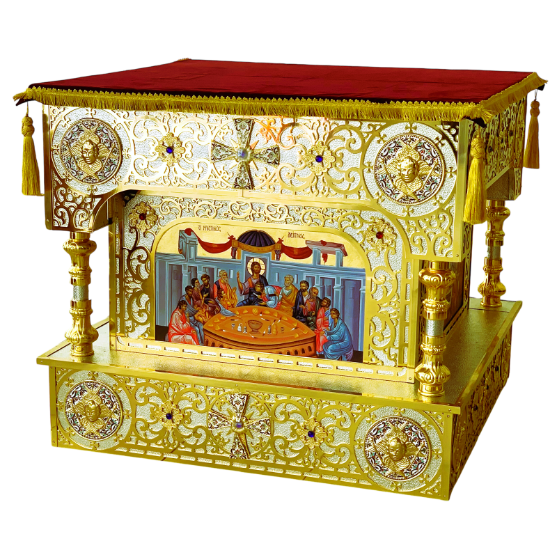 Sfanta masa din bronz cu icoane - aurita si argintata - email O 139-1340