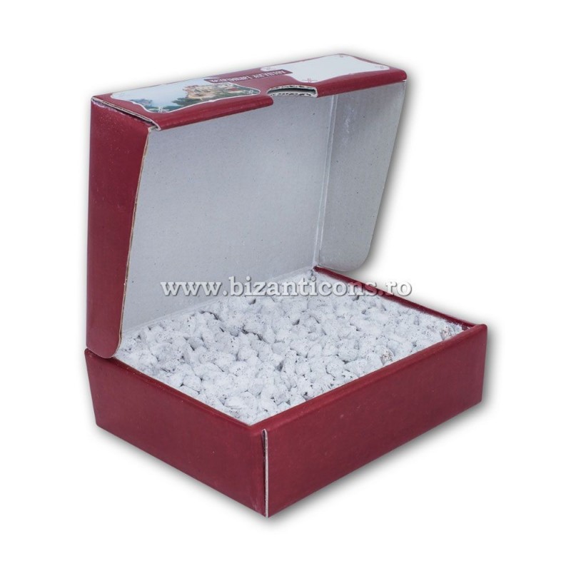 | Observatii () | Important! Pulberea aflată în cutia de tămâie este, de fapt, praf de magneziu, utilizat în cadrul procesului de producție pentru a preveni lipirea bobițelor de tămâie și pentru a le păstra calitatea superioară și proprietățile naturale. Cu cât calitatea sortimentului de tămâie este mai ridicată, cu atât crește și cantitatea de praf de magneziu utilizat, acționând ca o protecție față de factorii externi. Așadar, acesta nu alterează tămâia, ba chiar mai mult, are importante proprietăţi benefice. |